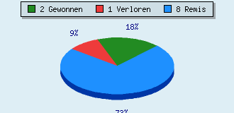 0 Partien am laufen 11 Partien beendet 2 Partien gewonnen: 0 durch Matt 2 durch Aufgabe 0 durch Zeitüberschreitung 1 Partien verloren: 0 durch Matt 1 durch Aufgabe 0 durch Zeitüberschreitung (= 0% ZÜ-Quote) 8 Partien remisiert