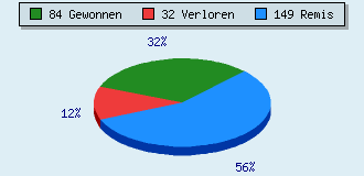 0 Partien am laufen 265 Partien beendet 84 Partien gewonnen: 5 durch Matt 72 durch Aufgabe 6 durch Zeitüberschreitung 1 durch Abbruch 32 Partien verloren: 0 durch Matt 31 durch Aufgabe 1 durch Zeitüberschreitung (= 0.4% ZÜ-Quote) 149 Partien remisiert