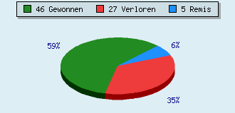 11 games running 78 games finished 46 games won: 21 by mate 17 by resign 8 by timeout 27 games lost: 7 by mate 17 by resign 3 by timeout (= 3.8% ZÜ-Quote) 5 games drawn