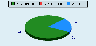0 Partien am laufen 10 Partien beendet 8 Partien gewonnen: 0 durch Matt 8 durch Aufgabe 0 durch Zeitüberschreitung 0 Partien verloren: 0 durch Matt 0 durch Aufgabe 0 durch Zeitüberschreitung (= 0% ZÜ-Quote) 2 Partien remisiert