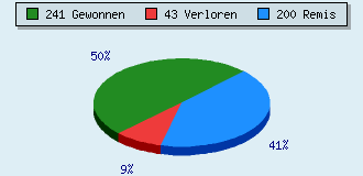 0 games running 484 games finished 241 games won: 15 by mate 196 by resign 28 by timeout 2 by breakup 43 games lost: 0 by mate 43 by resign 0 by timeout (= 0% ZÜ-Quote) 200 games drawn