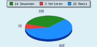 0 Partien am laufen 43 Partien beendet 14 Partien gewonnen: 1 durch Matt 10 durch Aufgabe 2 durch Zeitüberschreitung 1 durch Abbruch 3 Partien verloren: 0 durch Matt 2 durch Aufgabe 1 durch Zeitüberschreitung (= 2.3% ZÜ-Quote) 26 Partien remisiert