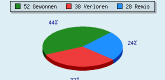 0 Partien am laufen 118 Partien beendet 52 Partien gewonnen: 4 durch Matt 40 durch Aufgabe 8 durch Zeitüberschreitung 38 Partien verloren: 0 durch Matt 38 durch Aufgabe 0 durch Zeitüberschreitung (= 0% ZÜ-Quote) 28 Partien remisiert