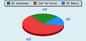 0 Partien am laufen 352 Partien beendet 80 Partien gewonnen: 2 durch Matt 48 durch Aufgabe 28 durch Zeitüberschreitung 2 durch Abbruch 219 Partien verloren: 13 durch Matt 206 durch Aufgabe 0 durch Zeitüberschreitung (= 0% ZÜ-Quote) 53 Partien remisiert