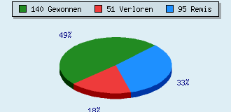 0 Partien am laufen 286 Partien beendet 140 Partien gewonnen: 5 durch Matt 122 durch Aufgabe 12 durch Zeitüberschreitung 1 durch Abbruch 51 Partien verloren: 0 durch Matt 51 durch Aufgabe 0 durch Zeitüberschreitung (= 0% ZÜ-Quote) 95 Partien remisiert
