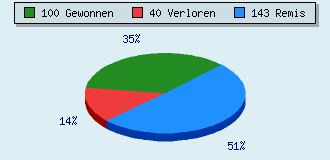 0 games running 283 games finished 100 games won: 4 by mate 83 by resign 11 by timeout 2 by breakup 40 games lost: 0 by mate 34 by resign 6 by timeout (= 2.1% ZÜ-Quote) 143 games drawn