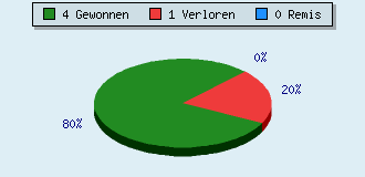 0 Partien am laufen 5 Partien beendet 4 Partien gewonnen: 0 durch Matt 0 durch Aufgabe 4 durch Zeitüberschreitung 1 Partien verloren: 0 durch Matt 1 durch Aufgabe 0 durch Zeitüberschreitung (= 0% ZÜ-Quote) 0 Partien remisiert