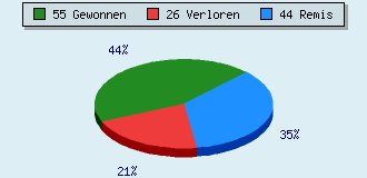 0 Partien am laufen 125 Partien beendet 55 Partien gewonnen: 2 durch Matt 45 durch Aufgabe 8 durch Zeitüberschreitung 26 Partien verloren: 0 durch Matt 24 durch Aufgabe 2 durch Zeitüberschreitung (= 1.6% ZÜ-Quote) 44 Partien remisiert