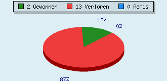 0 Partien am laufen 15 Partien beendet 2 Partien gewonnen: 0 durch Matt 1 durch Aufgabe 1 durch Zeitüberschreitung 13 Partien verloren: 0 durch Matt 0 durch Aufgabe 13 durch Zeitüberschreitung (= 86.7% ZÜ-Quote) 0 Partien remisiert