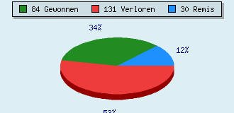 0 Partien am laufen 245 Partien beendet 84 Partien gewonnen: 5 durch Matt 56 durch Aufgabe 23 durch Zeitüberschreitung 131 Partien verloren: 2 durch Matt 125 durch Aufgabe 4 durch Zeitüberschreitung (= 1.6% ZÜ-Quote) 30 Partien remisiert