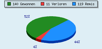 0 Partien am laufen 270 Partien beendet 140 Partien gewonnen: 12 durch Matt 117 durch Aufgabe 10 durch Zeitüberschreitung 1 durch Abbruch 11 Partien verloren: 0 durch Matt 4 durch Aufgabe 0 durch Zeitüberschreitung (= 0% ZÜ-Quote) 7 durch Abbruch 119 Partien remisiert