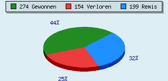 0 Partien am laufen 627 Partien beendet 274 Partien gewonnen: 25 durch Matt 206 durch Aufgabe 40 durch Zeitüberschreitung 3 durch Abbruch 154 Partien verloren: 7 durch Matt 135 durch Aufgabe 12 durch Zeitüberschreitung (= 1.9% ZÜ-Quote) 199 Partien remisiert
