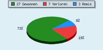 0 Partien am laufen 37 Partien beendet 27 Partien gewonnen: 9 durch Matt 17 durch Aufgabe 1 durch Zeitüberschreitung 7 Partien verloren: 0 durch Matt 7 durch Aufgabe 0 durch Zeitüberschreitung (= 0% ZÜ-Quote) 3 Partien remisiert