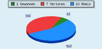 0 Partien am laufen 18 Partien beendet 1 Partien gewonnen: 0 durch Matt 0 durch Aufgabe 0 durch Zeitüberschreitung 1 durch Abbruch 7 Partien verloren: 0 durch Matt 5 durch Aufgabe 1 durch Zeitüberschreitung (= 5.6% ZÜ-Quote) 1 durch Abbruch 10 Partien remisiert