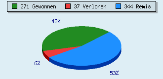 14 Partien am laufen 652 Partien beendet 271 Partien gewonnen: 12 durch Matt 231 durch Aufgabe 28 durch Zeitüberschreitung 37 Partien verloren: 0 durch Matt 31 durch Aufgabe 6 durch Zeitüberschreitung (= 0.9% ZÜ-Quote) 344 Partien remisiert
