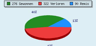 0 Partien am laufen 688 Partien beendet 276 Partien gewonnen: 35 durch Matt 213 durch Aufgabe 28 durch Zeitüberschreitung 322 Partien verloren: 1 durch Matt 228 durch Aufgabe 93 durch Zeitüberschreitung (= 13.5% ZÜ-Quote) 90 Partien remisiert