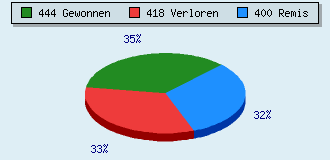 0 Partien am laufen 1262 Partien beendet 444 Partien gewonnen: 36 durch Matt 353 durch Aufgabe 53 durch Zeitüberschreitung 2 durch Abbruch 418 Partien verloren: 6 durch Matt 410 durch Aufgabe 2 durch Zeitüberschreitung (= 0.2% ZÜ-Quote) 400 Partien remisiert