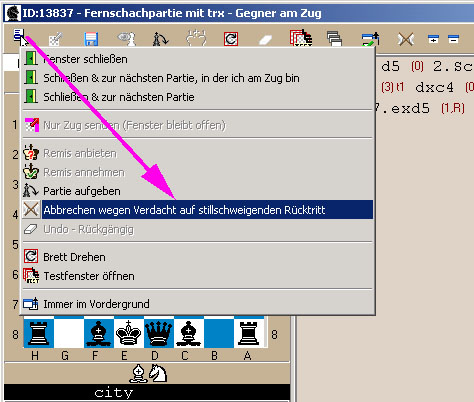 | remoteSchach - Hilfebereiche - Bedienung - Bedenkzeit reklamieren |