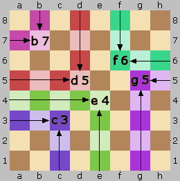 Durch die Kombination von Buchstaben und Zahlen kann jedes der 64 Felder genau bezeichnet werden. Diese Notation oder Schreibweise ist wichtig für den Fall, daß eine Partie aufgezeichnet oder eine bestimmte Stellung, ein Zug oder eine Zugreihe festgehalten werden soll, um Züge oder eine ganze Partie nachspielen zu können.