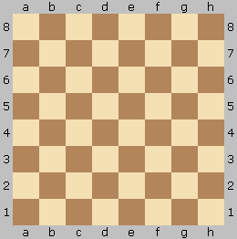 Die farbliche Unterteilung der 64 Flächen des Schachbretts dient nur der besseren Unterscheidung der einzelnen Züge und zur besseren visuellen Wahrnehmung des Stellungsbildes. Das Schachbrett wird so zwischen die beiden Spieler aufgelegt, daß links unten ein dunkles Eckfeld erscheint. Das Brett ist falsch aufgelegt, wenn das linke Eckfeld weiß ist.
