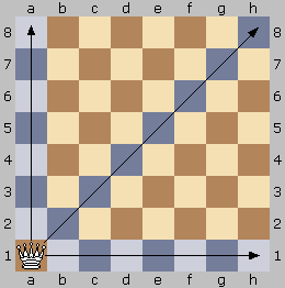 In manchen Schachbüchern finden wir die Erklärung, daß die Dane eigentlich so ziehe wie der König. Die Bewegungen der Dame sind jedoch nur durch den Brettrand oder durch andere Steine beschränkt, wärend der König lediglich einen kurzen Schritt machen darf. Man kann die Bewegung der Dame natürlich auch so erklären; es ist aber doch viel einfacher, von den schon bekannten Figuren Turm und Läufer auszugehen.