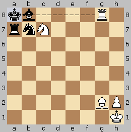 Weiß kann hier den König auf kein Feld stellen welches nicht vom Turm beherrscht ist, hat keine Steine zur Verfügung um diese zwischen dem schwarzen Turm und den weißen König zu stellen und kann auch nicht den Turm schlagen, somit ist Weiß matt.